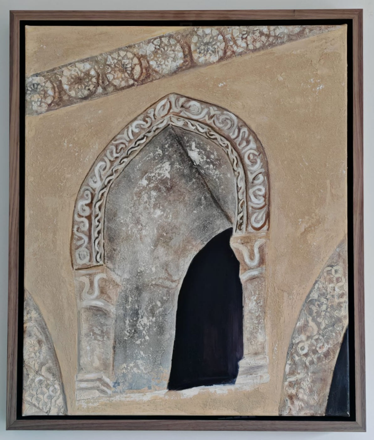 'Eternal Window' invites the viewer into a moment suspended between memory and presence, its richly textured surface echoing ancient stone and whispering histories. Built in layers of beige, stone, cream, subtle browns, and deep black, the piece feels both grounded and transcendent. There is a meditative stillness in the way light and shadow play across the textured acrylics, suggesting depth beyond the canvas. This work speaks in a visual language of time and endurance, encouraging the viewer to linger, breathe, and enter their own inner landscape.